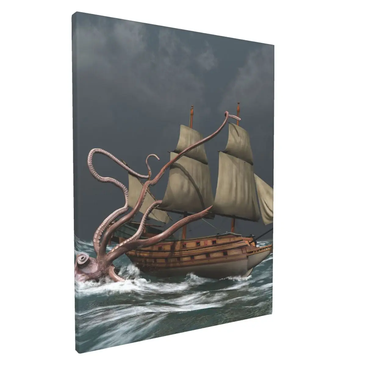 It just came to me one day, the combonation of this ship and this octopus turned out really balanced and funky!!i think it is a really fun piece. Size:12x16inch(30x40cm) we use high quality canvases which are designed specifically for canvas printing. Any questions please send me a message. The giant tentacles violently rip the ship apart! Our kraken canvas art is stretched on 1.5 inch thick stretcher bars and may be customized with your choice of black, white, or mirrored sides.