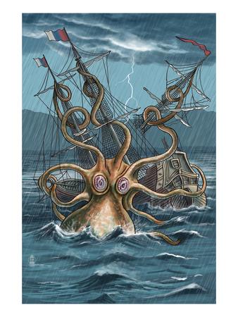 Seattle, washington, kraken attacking ship (12x18 art print, wall decor travel poster) 4.8 out of 5 stars 8.
